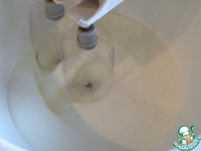 Когда наш кисель охладится, начинаем взбивать охлажденные сливки.
