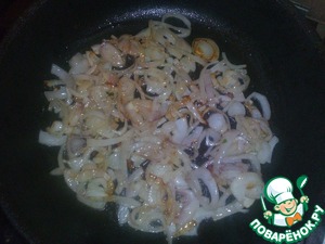 Чистим лук, режем так как вам удобно (кольцами, полукольцами, кубиками). Обжариваем до золотистого цвета.