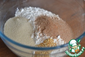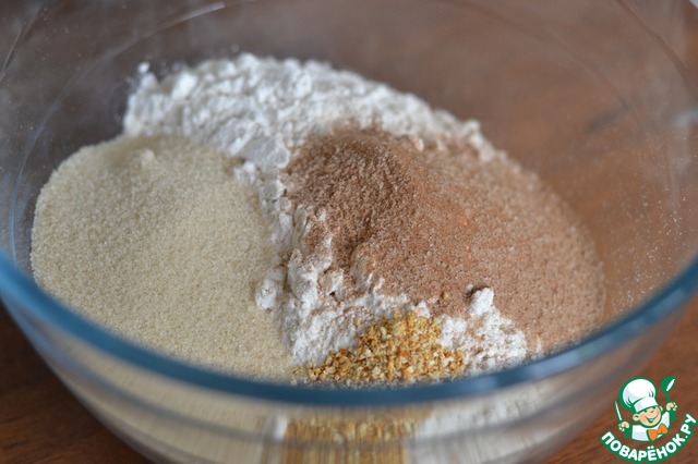 В миске смешать муку, сахар, корицу, цедру апельсина.