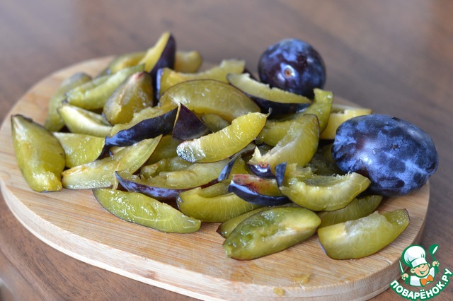 Сливы помыть, удалить косточку и нарезать на четвертинки.