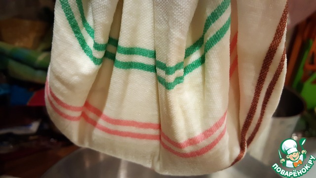 Миску выстелить чистым кухонным полотенцем и вылить йогурт. -