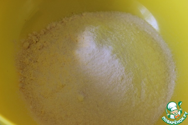 Смешиваем сухие ингредиенты - кукурузную муку, рисовую муку, сахар, ванилин, соль, соду.