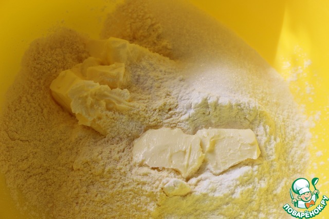 Добавляем сливочное масло и растираем в крошку.