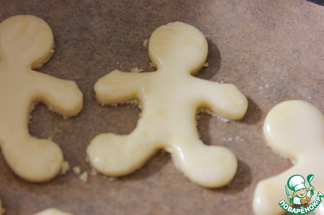 Затем раскатываем тесто в пласт на листе пергамента, нарезаем печенье и вместе с листом переносим на противень.