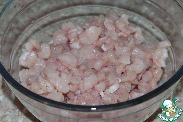 Филе нарезать небольшими кусочками.