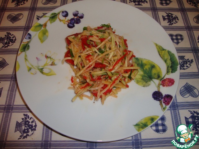 Яблоко очистить от кожуры, удалить сердцевину с семенами, натереть на корейской терке.