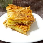 Выложить на раскатанное тесто, накрыть второй половинкой, хорошо защипнуть края, сделать в середине дырочку и в духовку на средний огонь. Минут через 35 из дырочки достать кусочек картошки, если готова, чуть прибавляем огонь, чтобы корочка стала золотистой, достаем из духовки и едим.