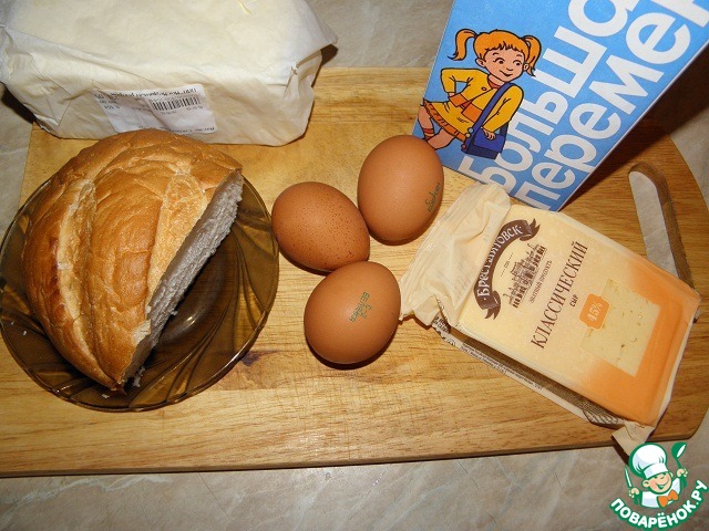 Ингредиенты для «Омлет с хлебом и сыром»:
