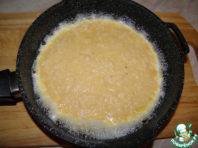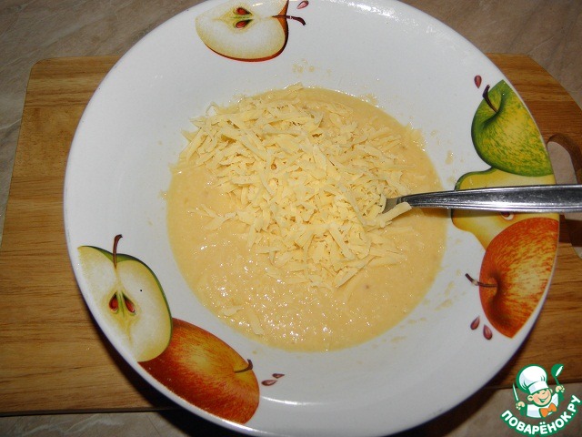 Добавить натертый сыр, посолить и еще раз перемешать.