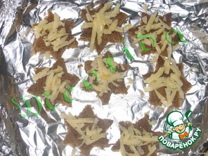 Вынимаем крутончики, посыпаем тертым сыром и возвращаем в духовку еще на 5 минут, чтобы их немножко сверху подсушить (фольгой сверху накрывать не нужно).