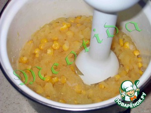 Блендером измельчить готовую яблочно-кукурузную смесь в пюре.