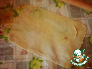 Тесто поделить на 12 частей, прикрыть салфеткой, чтобы оно оставалось теплым.