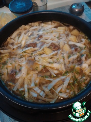 Ждем, пока закипит вода, даем покипеть 3-5 минут в зависимости от плотности капусты. Борщ с молодой капустой или пекинской/брокколи сразу после закипания готов к следующему этапу. Должно быть немного пожиже и поменьше, чем на фото - я переборщила с компонентами и поэтому мне пришлось на последнем этапе переливать все добро в 7-литровую кастрюлю :D -