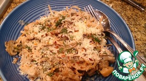 Вроде ничего особенного, макарошки.. Но все же я очень люблю это блюдо, может кому-нибудь приглянется и пригодится. Вообще в оригинале оно должно выглядеть немного по-другому - плавать в сливочном соусе, сливки должны быть жиииирные. Но я переделала его, "облегчила" как могла, чтоб был минимальный вред фигуре и здоровью. Угощайтесь!