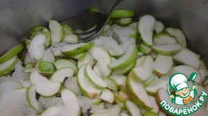 Присыпаем яблоки сверху сахаром, накрываем крышкой и оставляем на 14-18 часов для выделения сока.