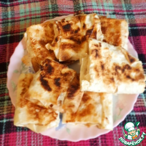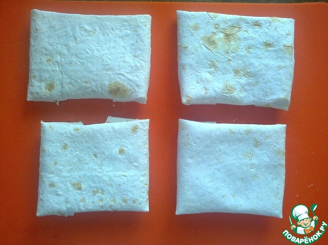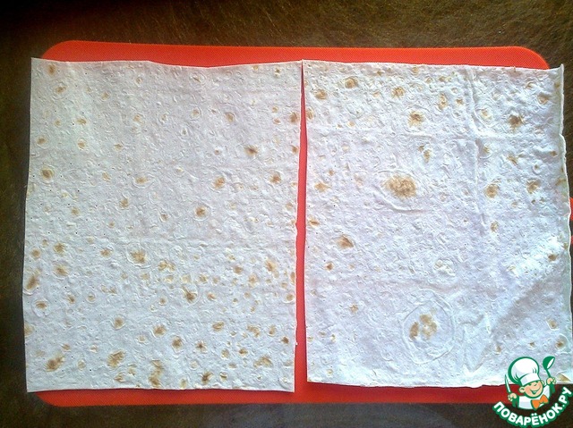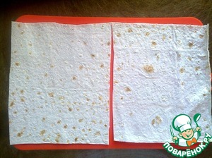 Лаваш разрезать на небольшие прямоугольнички. (Я разрезала лист лаваша на 4 части).