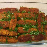 Котлетки прокатываем по панировке и отставляем на 10 минут.