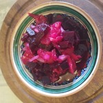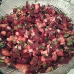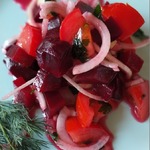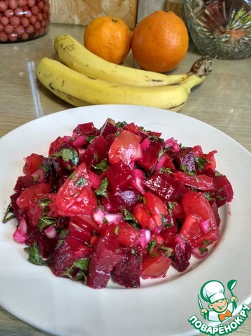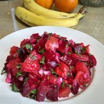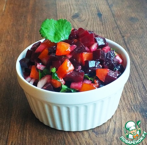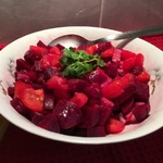 Одну крупную свеклу отварить или запечь, очистить, нарезать кубиками покрупнее.