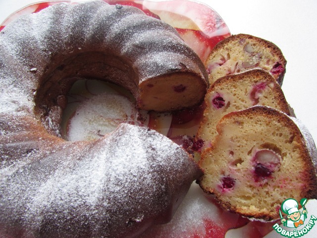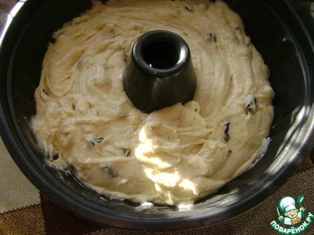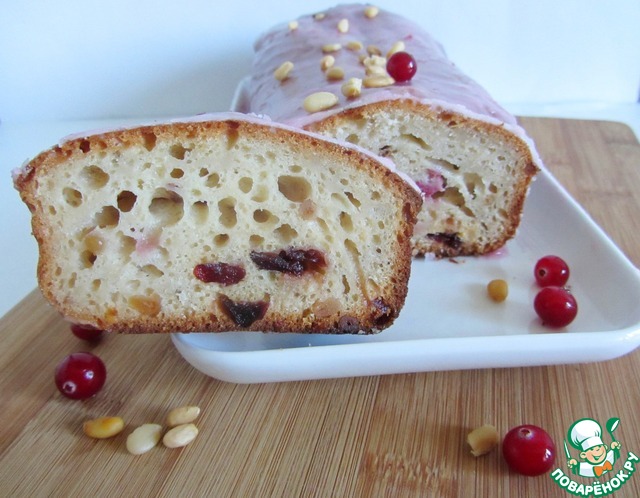 Добавить вяленую клюкву и орешки, вымешать лопаткой и выложить в подготовленную форму для кекса –лучше с отверстием в центре.