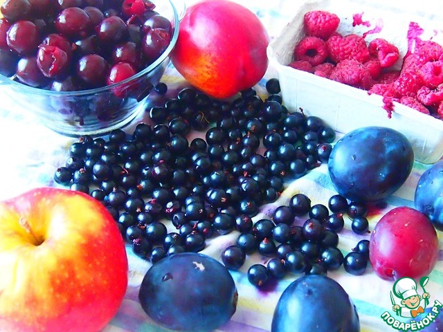 У меня были малина, черная смородина, немного клубники, вишни и слив, яблоко и нектарин.