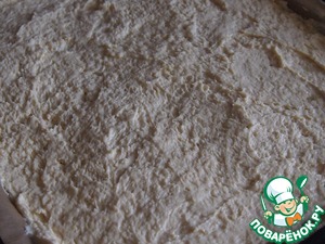 Выложить на противень, застеленный бумагой для выпечки, разровнять.