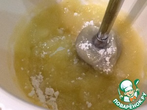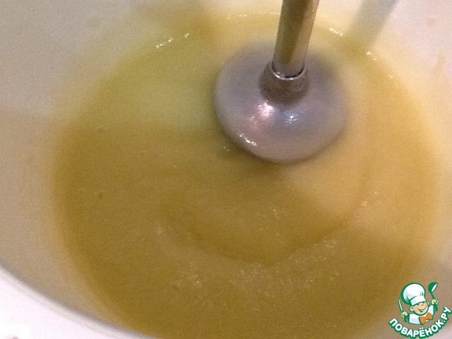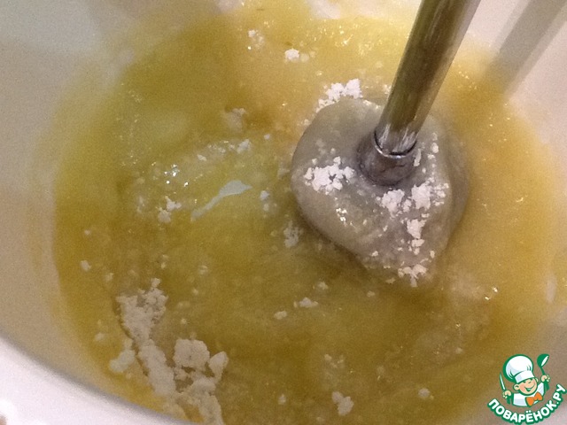 Пока мякоть теплая, пробить блендером до однородности, добавив сахарную пудру.