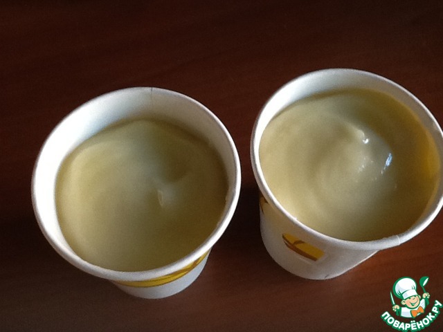 Разложить по стаканчикам (у меня вышло 2 бумажных по 180 мл) или креманкам, и убрать в морозилку.