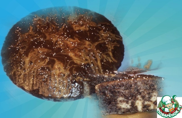 Пока печется кекс, приготовим сироп для пропитки. Смешаем какао с сахаром, разведем теплой водой. Ставим на плиту и доводим до кипения, непрерывно помешивая. Затем добавляем масло, ждем, когда растопится, доводим до кипения сироп и снимаем с огня.