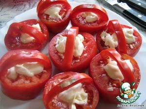 Вырезаем сердцевину так, чтоб получились корзинки и смажьте их тертым чесноком.