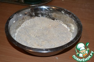 Холодный маргарин натереть на крупной терке, пересыпая мукой (2 стакана)