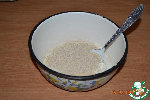 Взбить яйцо и смешать его со сметанной и дрожжами