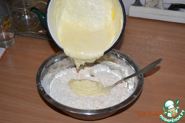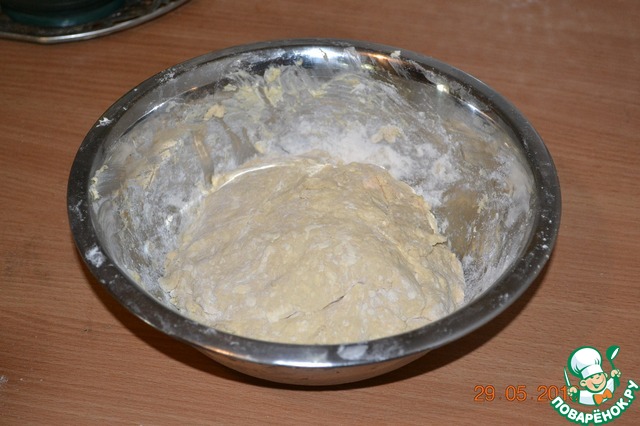 Тесто должно быть крутое (при необходимости добавить еще муки) и поставить на 1,5 часа в холодильник