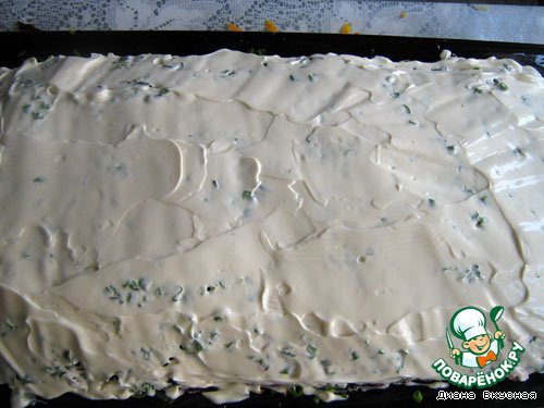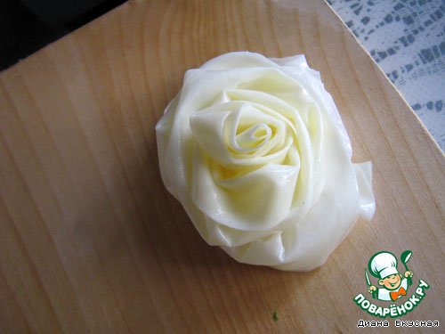 Украсить зеленью (я применила листья салата) и оформить розочками.