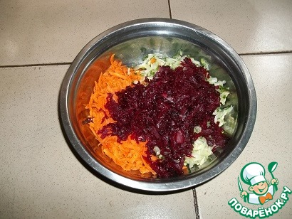 Количество всех овощей должно получиться примерно в равных пропорциях. -