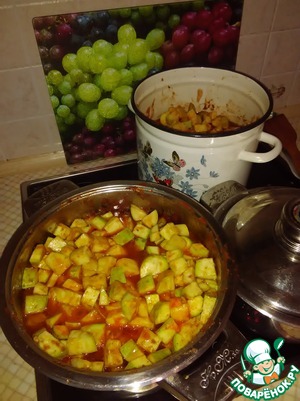 К кабачкам и чесноку добавляем все оставшиеся ингредиенты и варим 30 мин