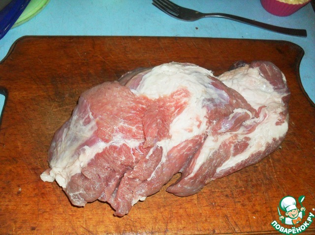 Итак:на мясе делаем косые глубокие надрезы и тщательно обмазываем затаром, особенно в надрезах.