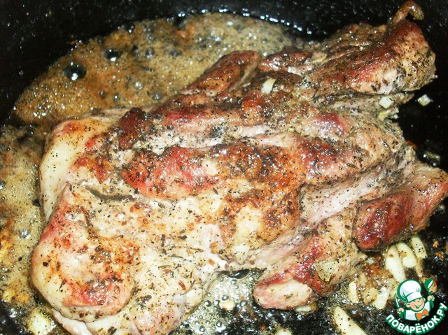 Вот, примерно, до такого состояния обжариваем наше мясо.