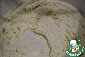Взбить масло до светлого цвета и постепенно ввести сахар (сахарную пудру), взбивая минуты 3-4.