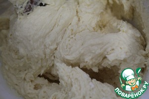 Муку и разрыхлитель просеять, ввести в масляно-яичную смесь.