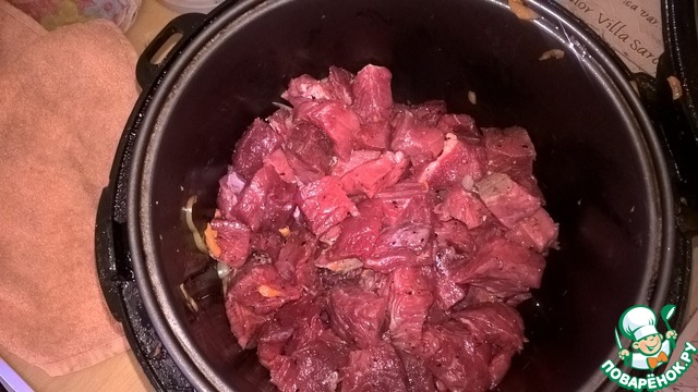• А мясо, тем временем, обжариваем в мультиварке перемерено 20-30 минут.