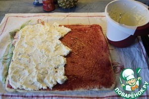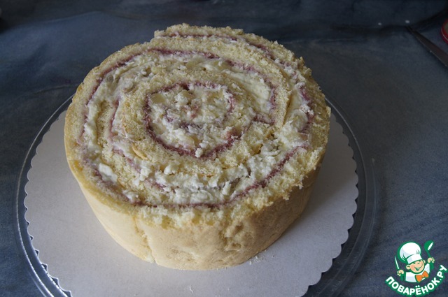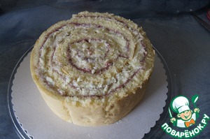 3. Осторожно опрокинуть готовый бисквит на посыпанное сахаром полотенце.
