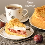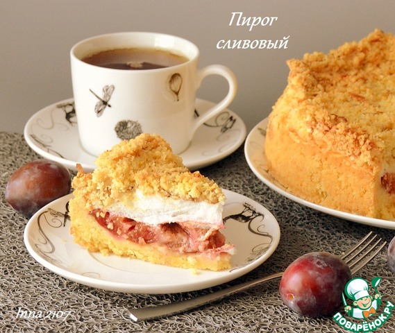Поместите нарезанные сливы в миску и добавить к сливам 1/4 стакана сахара, корицы и лимонного сока. Всё хорошо перемешать. Затем отложите сливы в сторону на 30 минут. Разогреть духовку до 180 градусов. Кухонный комбайн (можно руками), в чашку положить муку, разрыхлиТель, масло и нарезанное кубиками, сахара. Добавить желтки, цедру и лимонный сок и смешайте коротким нажатием только пока тесто будет как крошка и немного сухой. Половину крошки положите в отдельную миску, перемешать с измельчеными грецкими орехами и отложить в сторону (в летнее время - в холодильнике). Вторую половину теста высыпать в форму диаметр 26 и равномерно распределите руками. СЛИТЬ жидкость от слив и поместить сливы без жидкости в форму. Выпекать 25- 30 мин. В это время взбейте белки с сахаром до устойчивых пиков. Затем вынуть пирог и сверху распределите взбитые белки, затем на белки распределите вторую часть крошки (тесто) с измельчеными орехами, и снова поставьте в духовку, выпекайте ещё 25-30мин. Достаньте из духовки, дайте пирогу постоять, и остыть, и можно наслаждаться. ПРИЯТНОГО АППЕТИТА.[
