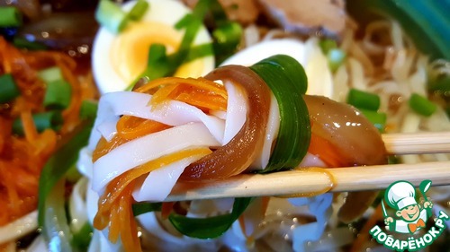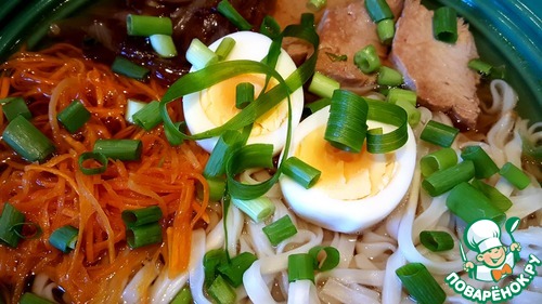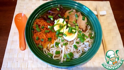 Ароматный суп по мотивам рамен для любителей аниме детского возраста и всех взрослых любителей пряно - ароматной китайско - корейско - японской кухни. В нашей семье этот суп на сегодняшний день является самым любимым и востребованным всеми членами семьи. Посвящается моей дорогой и супер великолепной подруге - Наташеньке Kuss!!!