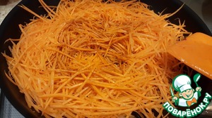 Морковь натереть на тёрке для корейской моркови, по возможности вдоль. -