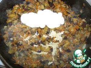Далее добавляем майонез и пропущенный через пресс чеснок, перемешиваем. накрываем крышкой и тушим еще 5 минут.