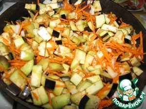 Морковь трем на средней терке, лук и баклажаны режем кубиками.