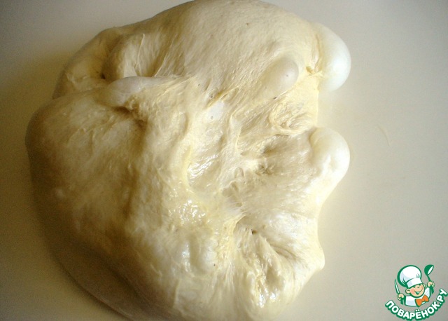 Обмять тесто, выложить на стол, поворачивая, складывать края, прижимая тесто сверху.