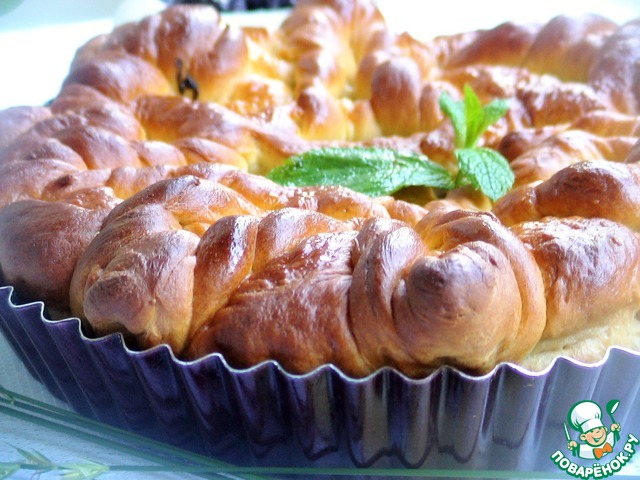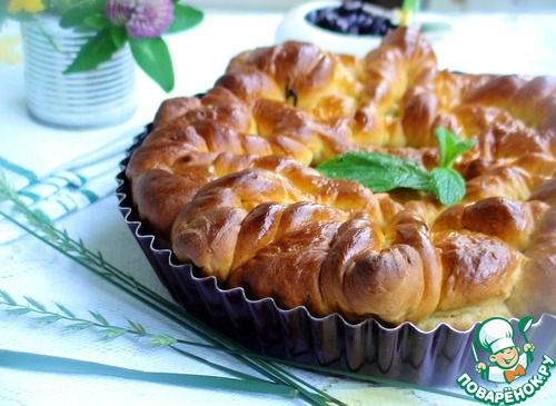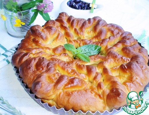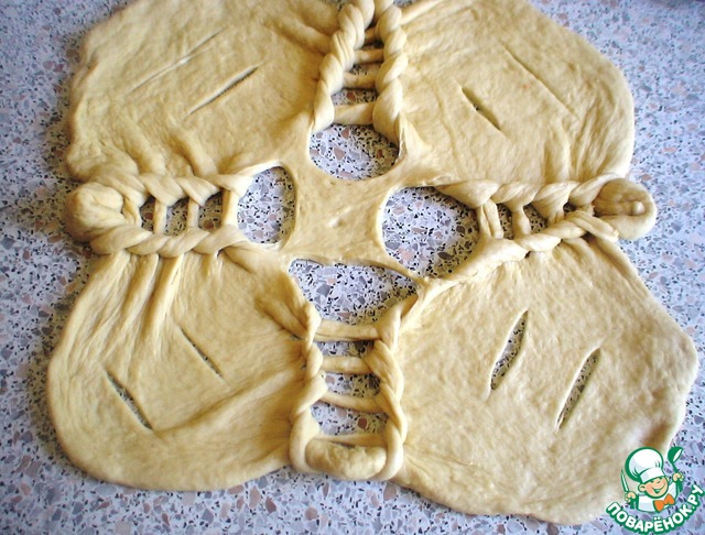 Красивую «крышку» переносим на пирог и даем пирогу подняться, минут 20 не больше.