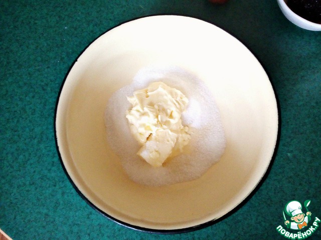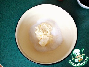 Взбиваем 110 г. масла комнатной температуры (т. е. оно должно быть мягким), 150 г. сахара и 1 ч. л. ванильного сахара