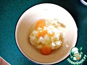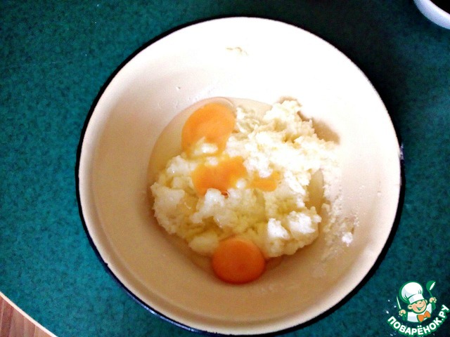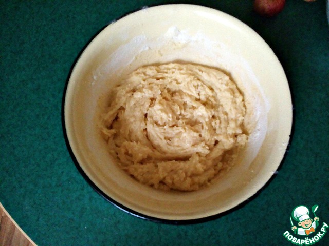 Затем добавляем 200 г. муки и 1 ч. л. разрыхлителя, замешиваем тесто
